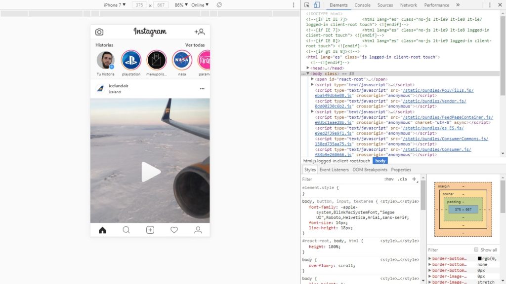 Una volta installato vedrai una nuova icona apparire in alto a destra, ovvero dove si trovano tutte le altre estensioni. Clicca su di essa e apparirà una lunga lista di tutti i differenti dispositivi per il browser. Una volta che avrai cliccato su uno, ricarica la pagina Instragram e vedrai il design cambiare completamente. Ora hai la versione simulata dell’app che usi da mobile.