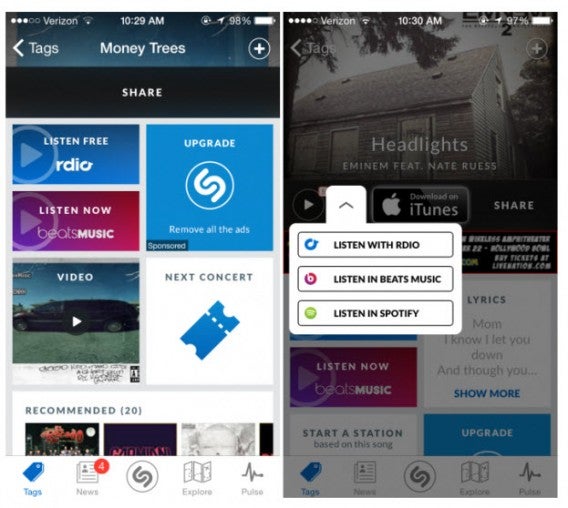 La versione per iOS (iPhone e iPad) di Shazam, popolare app di riconoscimento musicale, sta cominciando a integrare la funzione “Ascolta ora” di Beats Music, il servizio di musica in streaming recentemente acquistato da Apple.