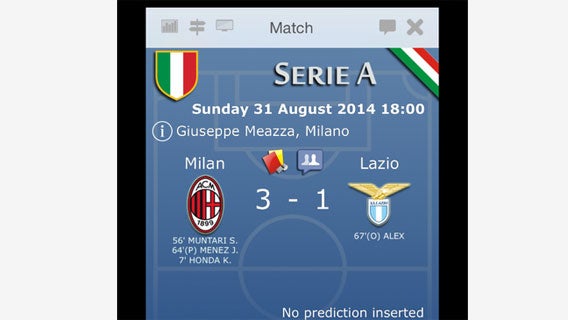 Serie A Live è leggera e funziona bene, non ha nulla di complicato. L’unica feature extra è il gioco dei pronostici in cui puoi sfidare i tuoi amici di Facebook a indovinare il risultato di una partita.