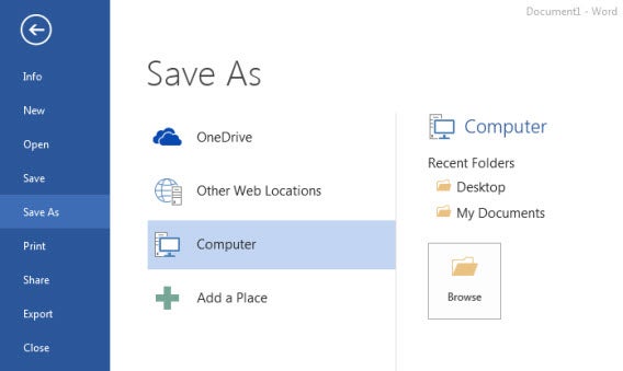 Office 2013 ti permette di salvare i file direttamente su OneDrive