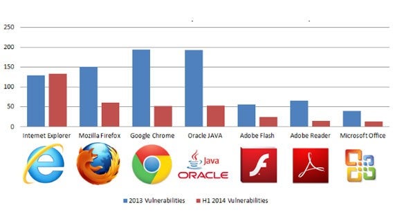 Il grafico mostra come la maggior parte dei software abbiano migliorato le loro prestazioni tra il 2013 e il 2014. Questi dati dipendono dal fatto che Internet Explorer abbia smesso di aggiornare il vecchio Windows XP e il suo browser.