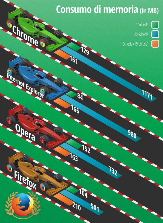 Il browser di Mozilla è la macchina con il minor consumo, il migliorrapporto km/litro o, per spostare la metafora su terreno informatico, con il rendimento MB/sec.
