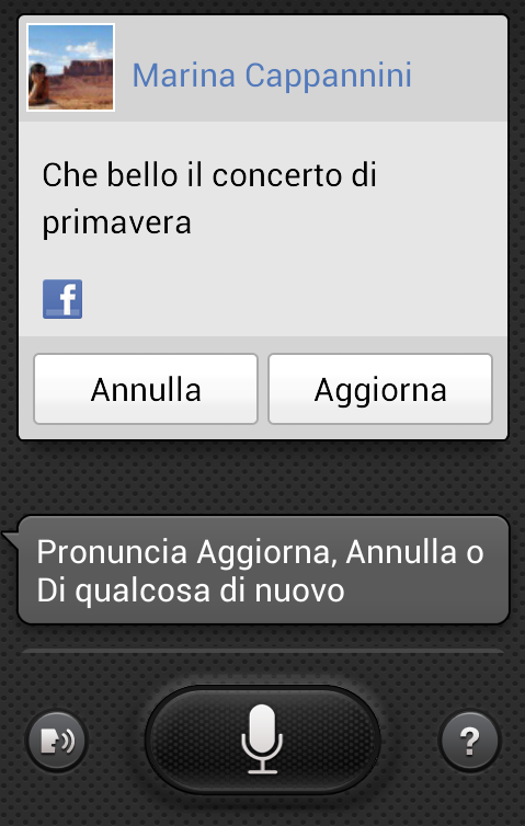 Ora non devi far altro che cliccare sul pulsante centrale del microfono e pronunciare il comando che corrisponde all’azione da fare.