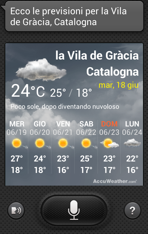 - Meteo – Trova le previsioni del meteo per la tua città chiedendo aiuto a S Voice. Pronuncia Quali sono le previsioni oggi o Quali sono le previsioni della settimana e attendi il risultato della ricerca.