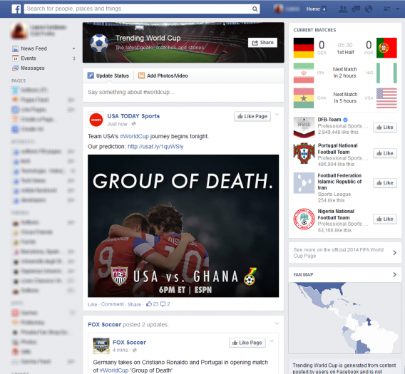 Ovviamente l’hub raccoglie anche tutti gli aggiornamento di status di utenti e pagine Fan che includono gli hashtag #Mondiali o #WorldCup.