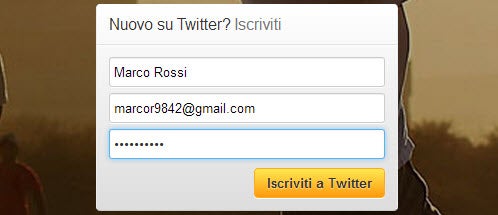Il primo passo per iniziare la tua avventura è, ovviamente, registrarti sul social network. Vai all’indirizzo www.twitter.com, inserisci i dati richiesti e clicca su Iscriviti a Twitter.