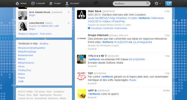 Un esempio è forse più semplice. Se scrivo un tweet con la parola chiave #softonic, cliccando sul link vieni ridirezionato su una timeline con i messaggi degli utenti che hanno scritto questa parola chiave nel loro testo.