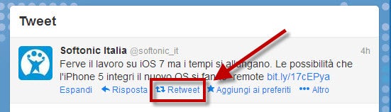 L’etimologia della parola non lascia scampo ai fraintendimenti: il re-tweet è il reinviare o rimandare ai tuoi follower un messaggio scritto da qualcun altro. Il modo più semplice per farlo è cliccare sul pulsante Retweet sotto al testo da inoltrare, ma puoi anche scrivere un nuovo messaggio con lo stesso testo che includa “RT @nomeutente”, il che è anche una menzione…