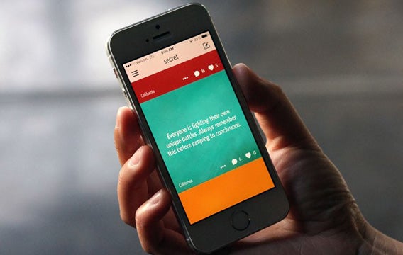 Secret doet ongeveer hetzelfde, met als groot verschil dat je berichten uitwisselt met contactpersonen, waar Whisper altijd anoniem is. Het is mogelijk om vrienden van vrienden (van vrienden) te bereiken met Secret, maar het beginpunt ligt bij je persoonlijke contacten.