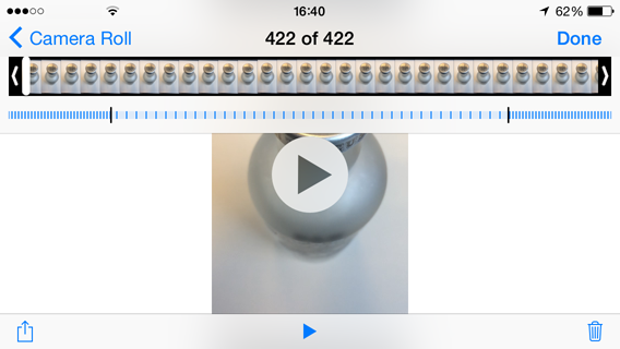 Daarnaast kan je andere Nokia-apps, zoals Nokia Smart Cam waarmee je 10 foto’s achter elkaar maakt, incorporeren. De Camera-app van de iPhone is niet zo uitgebreid als de Nokia-variant, maar bevindt zich nog steeds op een hoog niveau. Deze app geeft je onder andere de mogelijkheid om video’s van 120fps te schieten, waardoor je mooie slow motion effecten kan creëren. Als je een video aan het maken bent, kan je tegelijkertijd ook foto’s nemen door op de witte knop links onderin beeld te klikken. Tenslotte kan je met de Burst tien foto’s achter elkaar maken.