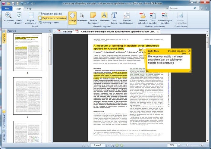 Foxit Reader valt op door de vele functies, die verder gaan dan Adobe Reader X. De software beslaat minder ruimte dan Adobe Reader maar is een beetje geplaagd door de vele installatieschermen. Vink je niets uit tijdens de installatie dan zet de software zichzelf in alle mogelijke startbalken en open je Foxit dan verschijnt meteen reclame. Toch is de applicatie erg handig en je voegt gemakkelijk notities toe. Een document deel je na bewerking eenvoudig met de Facebook-knop op je muur of mail je direct vanuit de app naar anderen.