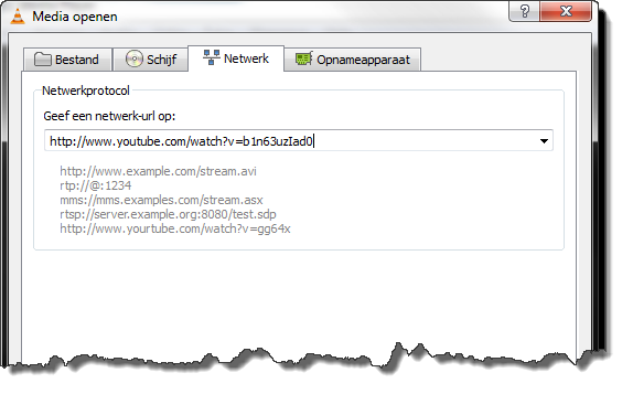 Zodra je VLC media player open hebt staan, klik je op Media en daarna op Netwerkstream openen. Hier typ je het adres in en klaar is Kees. Het YouTube-filmpje wordt nu afgespeeld vanuit VLC.