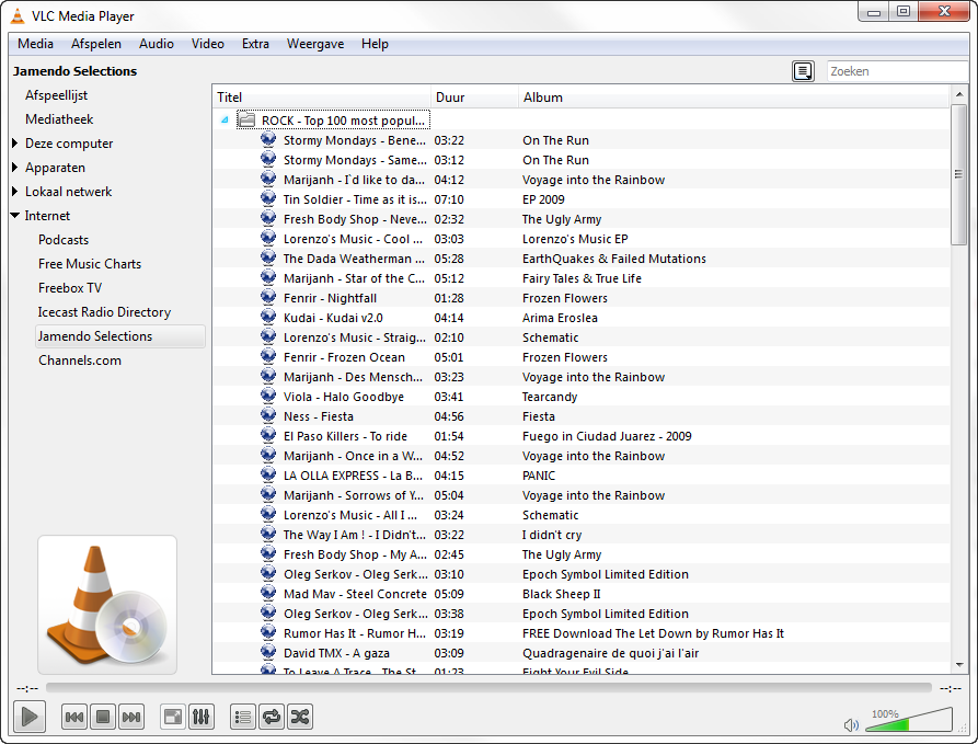 Om online muziek te beluisteren ga je naar Weergave, dan Afspeellijst en vervolgens kies je voor Internet. Hier vind je tal van zenders in allerlei genres. Wanneer je een liedje beluistert dat je bevalt, dan klik je met je rechtermuisknop daar op en dan krijg je de optie om het nummer op te slaan.
