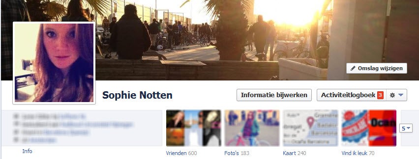 De blokken met Vrienden, Foto’s, Kaart, en Vind ik leuk naast jouw informatie hebben plaatsgemaakt voor tabs.