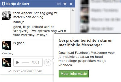 Korte geluidsfragmenten versturen via chatapplicaties is natuurlijk niet nieuw. Onze favoriet WhatsApp biedt bijvoorbeeld al lange tijd deze optie. Belangrijker is daarom de aankondiging dat we binnenkort via internet kunnen telefoneren via Facebook.
