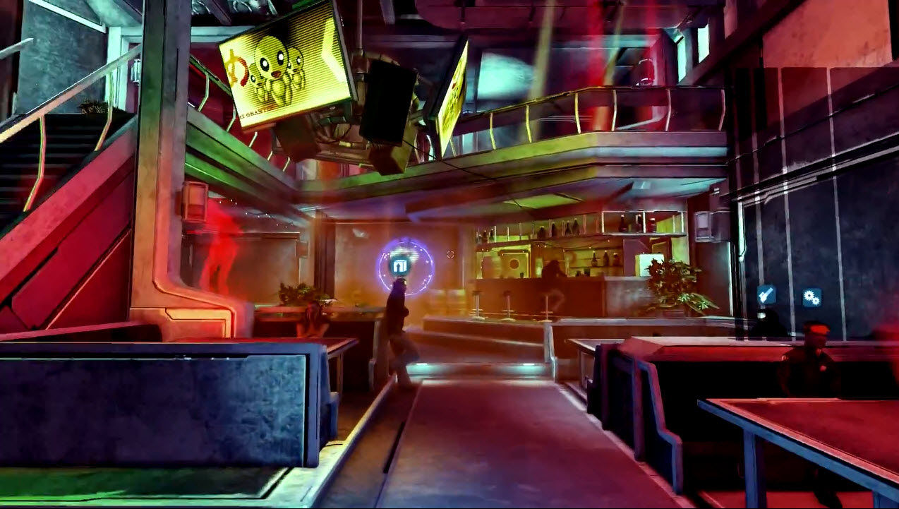 In de enorme ruimtestations kun je veel meer uitrichten dan voorheen het geval was. Je landt bij zo’n station, verkent het te voet, gooit schildgeneratoren in de strijd en maakt her en der onderdelen van de omgeving kapot.