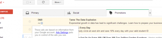 Ironisch genoeg heeft Google net de nieuwe categorieën geïntroduceerd in de Gmail inbox. Hierin wordt de inkomende mail direct verdeeld over Primair, Sociaal en Reclame. De reclames van Google zullen dus in laatstgenoemde map verschijnen. Venture Beat vroeg Google om een reactie en ontving het volgende.