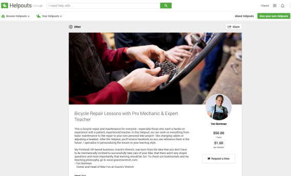 Als ik er na al deze hulp nog steeds niet was uitgekomen, dan had ik ook gebruik kunnen maken van de nieuwe service van Google: Helpouts. Hier volg je cursussen door middel van videoconferencing. Ze hebben zelfs al een cursus op het gebied van fietsen repareren!
