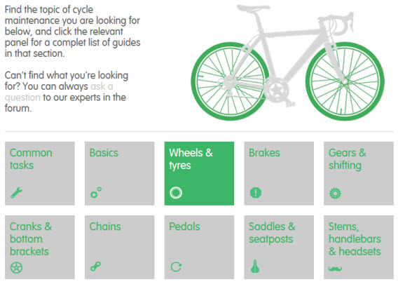 Door slim Googlen kwam ik een handige website tegen genaamd MadeGood.bikes. Deze intuïtieve site biedt gratis tutorials en je hoeft niet eens te weten hoe het onderdeel wat je wilt repareren heet. Beweeg je cursor over de onderwerpen en op de fiets in beeld zie je waar de onderdelen zich bevinden.