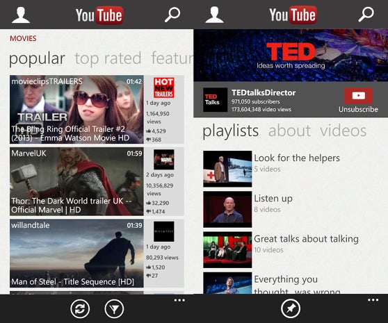 YouTube voor Windows Phone wordt geblokkeerd omdat de app niet in HMTL5 gemaakt is, maar hetzelfde geldt voor iOS en Android.