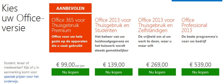 - Office 2013 voor Thuisgebruik en Studenten met Word, Excel, PowerPoint en OneNote (€139)