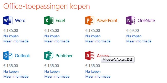Alles programma’s van het Office-pakket zijn ook los te koop via deze pagina op de Microsoft-website. Zoals je ziet zijn deze programma’s echter redelijk prijzig.