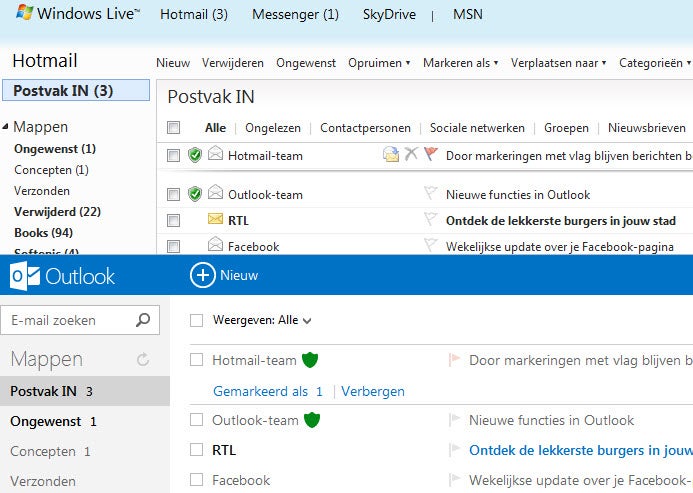 Outlook van buiten, Hotmail van binnen