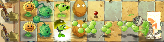 Cabbage-pult – Een katapult die kool lanceert richting de zombies. Zet de Cabbage-pult achter in het veld neer en direct vanaf begin neemt hij de zombies al onder vuur. Met het groene blad lanceert hij raketten naar alle zombies op het bord!