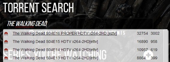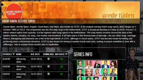 Als je op een serie klikt, kom je in een nieuw venster terecht waar je een korte synopsis van de afleveringen leest en aangeeft of je de aflevering al gezien hebt. Daarnaast vind je bij elke episode een icoontje waarmee je direct naar een beschikbare torrent op The Pirate Bay of Kick Ass Torrents zoekt. Ik raad je aan om hiervoor de enige legale torrent-client BitThief te gebruiken. Met deze client kun je de (in Nederland illegale) uploads namelijk volledig uitschakelen.