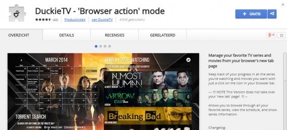 Volg jij meerdere series tegelijkertijd? Dan kun je eigenlijk niet zonder DuckieTV. Naast de handige kalender en zoekfunctie, ziet de Chrome-extensie er ook nog eens gelikt uit en werkt zonder haperingen. DuckieTV is een open source-extensie, wat betekent dat er door verschillende mensen aan gewerkt wordt. Hierdoor zal DuckieTV in de toekomst nóg beter worden.