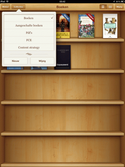 iBooks is echter ongeëvenaard qua presentatie. De interface ziet er prachtig uit, je bibliotheek is mooi en overzichtelijk en de app geeft je de mogelijkheid om je boeken zo organiseren als jij maar wilt.
