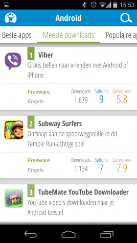 De Softonic-app geeft je namelijk de mogelijkheid om alle content de delen via mail, tekstberichten of via Twitter. Snel en handig!