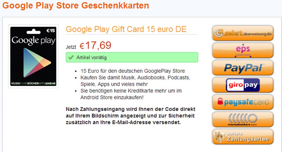 Play Store-cadeaubon uit Duitsland