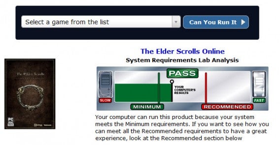 Can You Run It? geeft daarnaast interessante informatie over je systeem. Om meer mogelijkheden te ontdekken besloot ik om te zien of The Elder Scrolls Online goed zou werken op mijn computer. In dit geval werden de minimumeisen ook gehaald, maar zit mijn pc niet in de buurt van de aanbevolen systeemeisen.