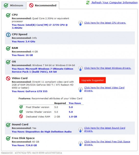Scroll naar beneden op de pagina, klik op Recommended en je vindt meer informatie over op welk vlak je pc precies tekort komt. Klik je op de melding Upgrade Suggested, dan neemt Can You Run It je mee naar een pagina die je een aantal opties aanbeveelt voor aan te schaffen pc-componenten.