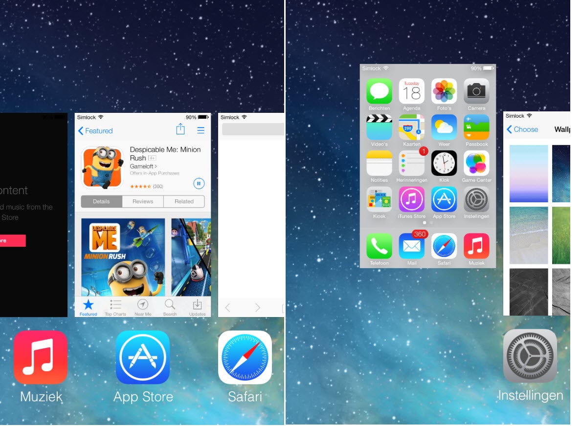 Heen en weer schakelen tussen geopende apps is verbeterd in iOS 7. Nog steeds open je het multitask-menu door twee keer op de Home-knop te drukken, maar nu zie je tevens een preview van elke applicatie. Snel een app sluiten? Veeg deze dan naar boven op het scherm en weg is ‘ie.
