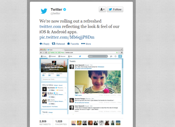Het nieuwe Twitter moet het hebben van visuele impact. Net als op Facebook is ervoor gekozen om prioriteit te geven aan beeld; eerst op de tijdlijn en nu dus ook bij je profiel.