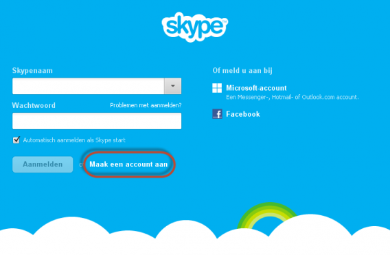 3. Klik op Maak een account aan. Nu is het tijd om een goede inlognaam te bedenken voor je Skype-account.