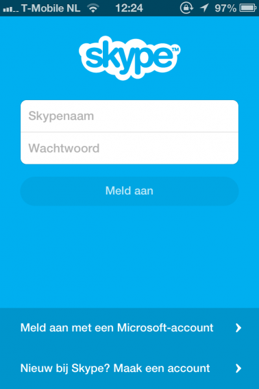 2. Start Skype. Het programma toont direct het inlogscherm.