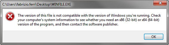 Hoewel de meeste oudere applicaties vloeiend werken op een 64-bits-systeem, zijn sommige incompatibel. Hele oude software uit het 16-bit-tijdperk (voor Windows 3.1, Windows 95, etc.) werkt sowieso niet op een 64-bits-systeem. Probeer het toch en je krijgt een mooie foutmelding.