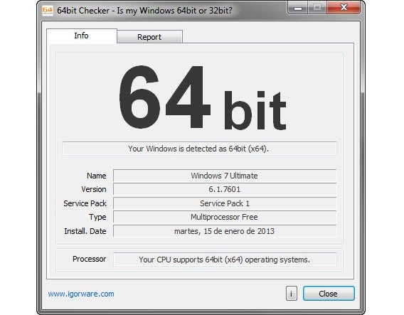 Om 64-bits-programma’s te gebruiken heb je een 64-bits-besturingssysteem nodig, dat weer vereist dat je een 64-bits-processor in je pc hebt zitten. Praktisch elke moderne computer heeft dat, maar wil je zeker zijn van je zaak dan gebruik je deze 64bit-checker.