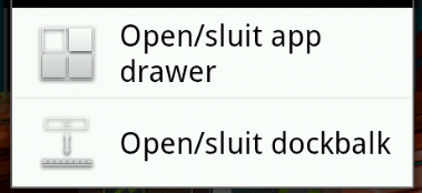 Verschijnt de Dock maar is er geen pictogram voor applicaties te zien, dan kies je in plaats van de knop Open/sluit dockbalk de knop Open/Close app Drawer om dit icoon op een scherm te zetten.