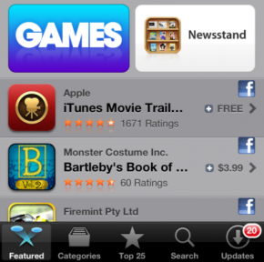 Het gerucht gaat dat Apple nieuwe functies ontwikkelt voor de applicaties in de App Store, voor iTunes en de iBook Store. Zoals je hierboven reeds las, is het mogelijk dat er Facebookintegratie komt met de optie voor het ‘delen van apps’.