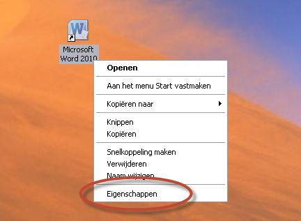 Klik met je rechtermuisknop op het programma dat je via een sneltoets wil openen. In het menu kies je ‘Eigenschappen’.
